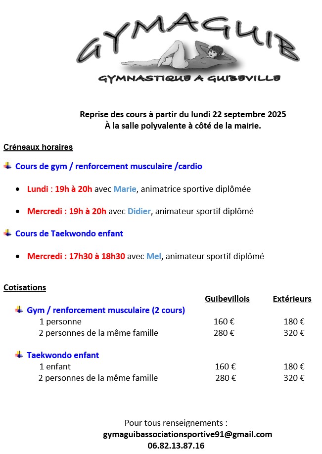 Gym santé, cardiotraining, stretching : le lundi 19h00-20h00 et le mercredi 19h-20h | ![]() |